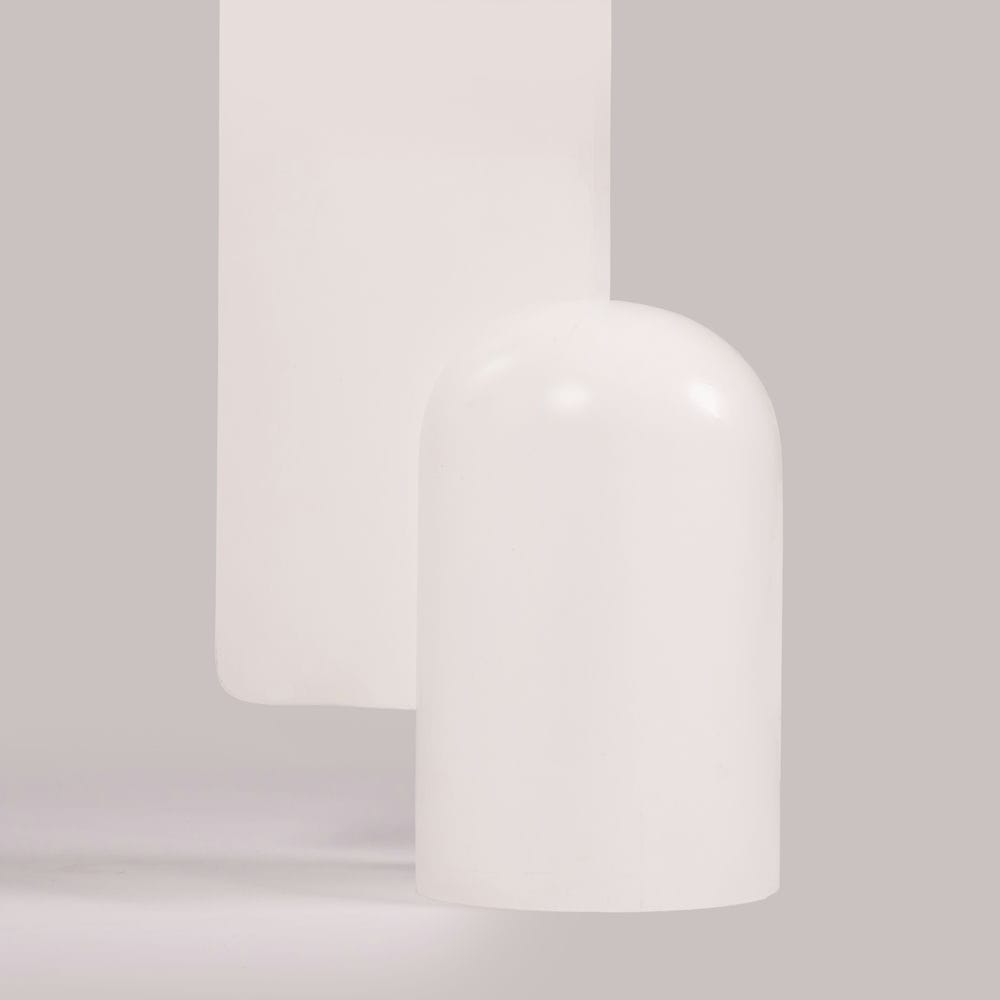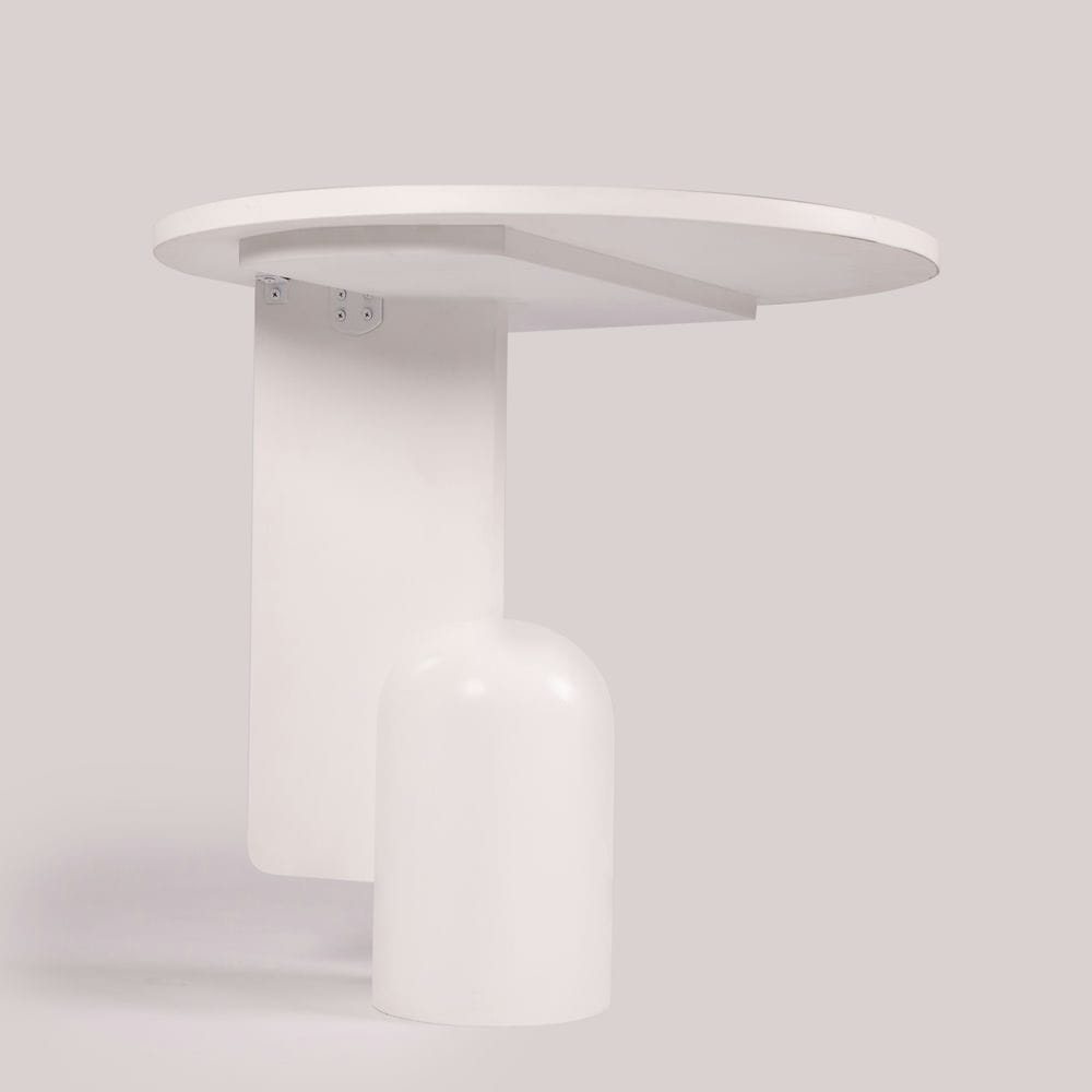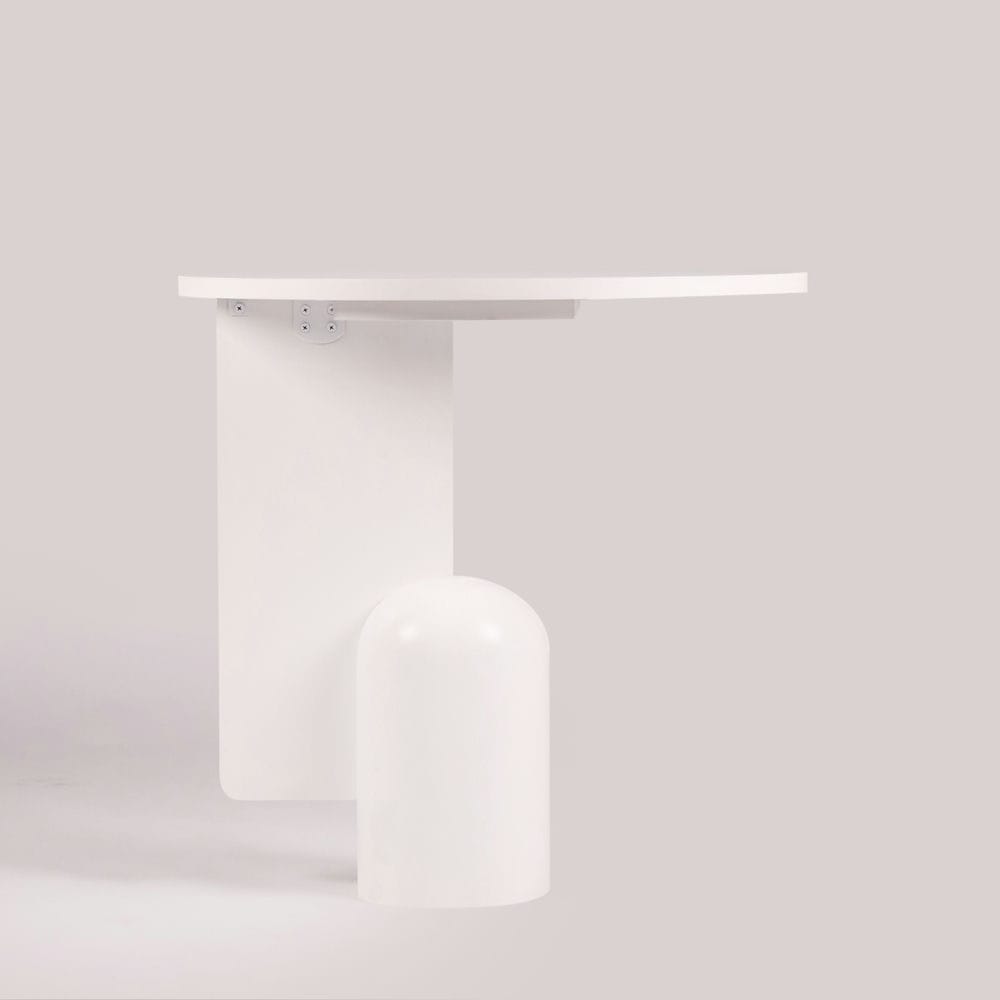 Alblune mang đến cảm giác tĩnh lặng, thanh thoát như một tác phẩm điêu khắc đương đại. Với phần chân bàn gồm hai khối hình học tương phản – một mặt phẳng đứng sắc sảo và một trụ tròn bo mềm mại – thiết kế này tạo nên sự cân bằng giữa cứng và mềm, âm và dương. Toàn bộ bàn được hoàn thiện bằng lớp sơn trắng lì, làm nổi bật đường nét hình khối và tăng độ sáng cho không gian.