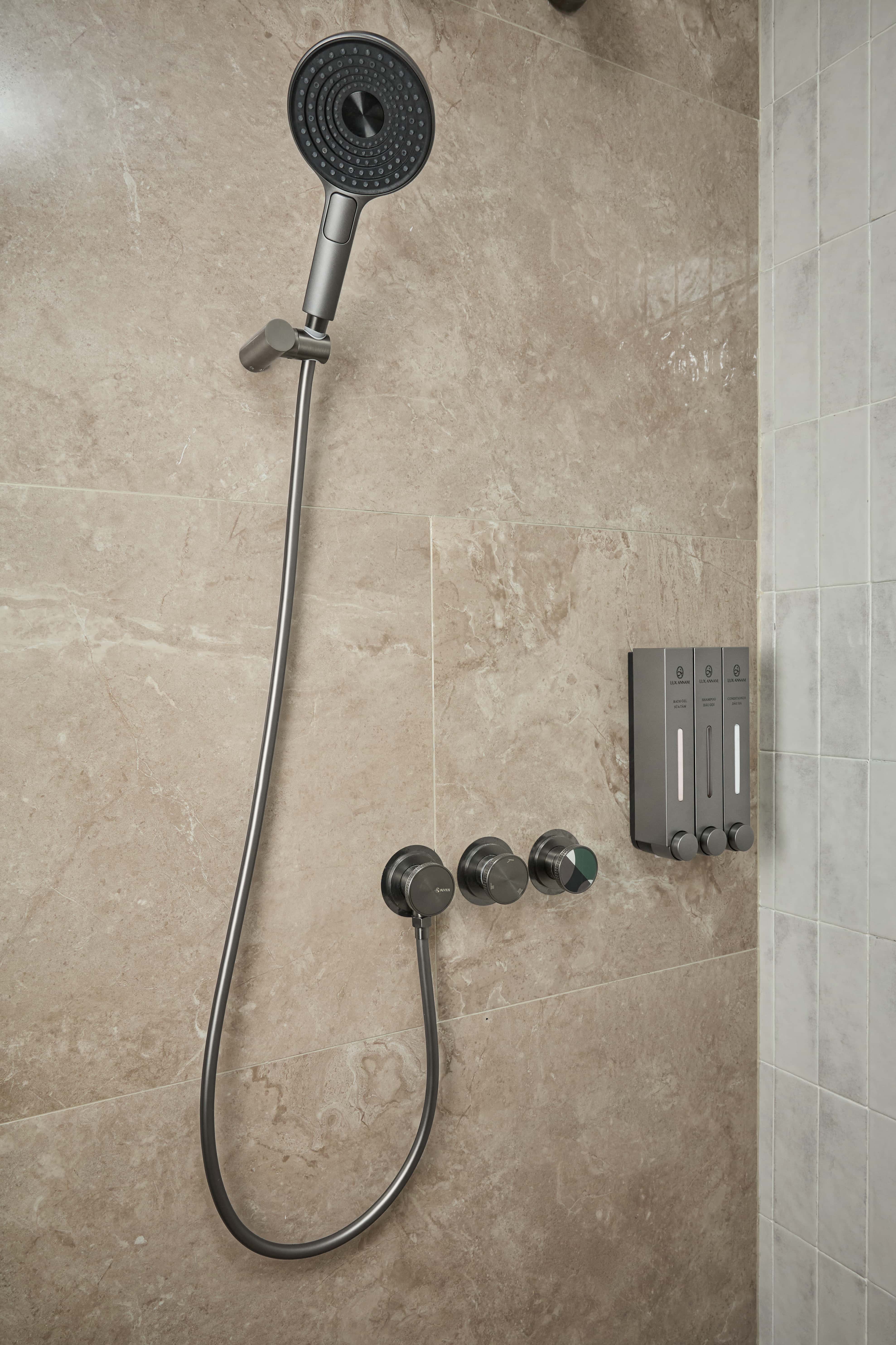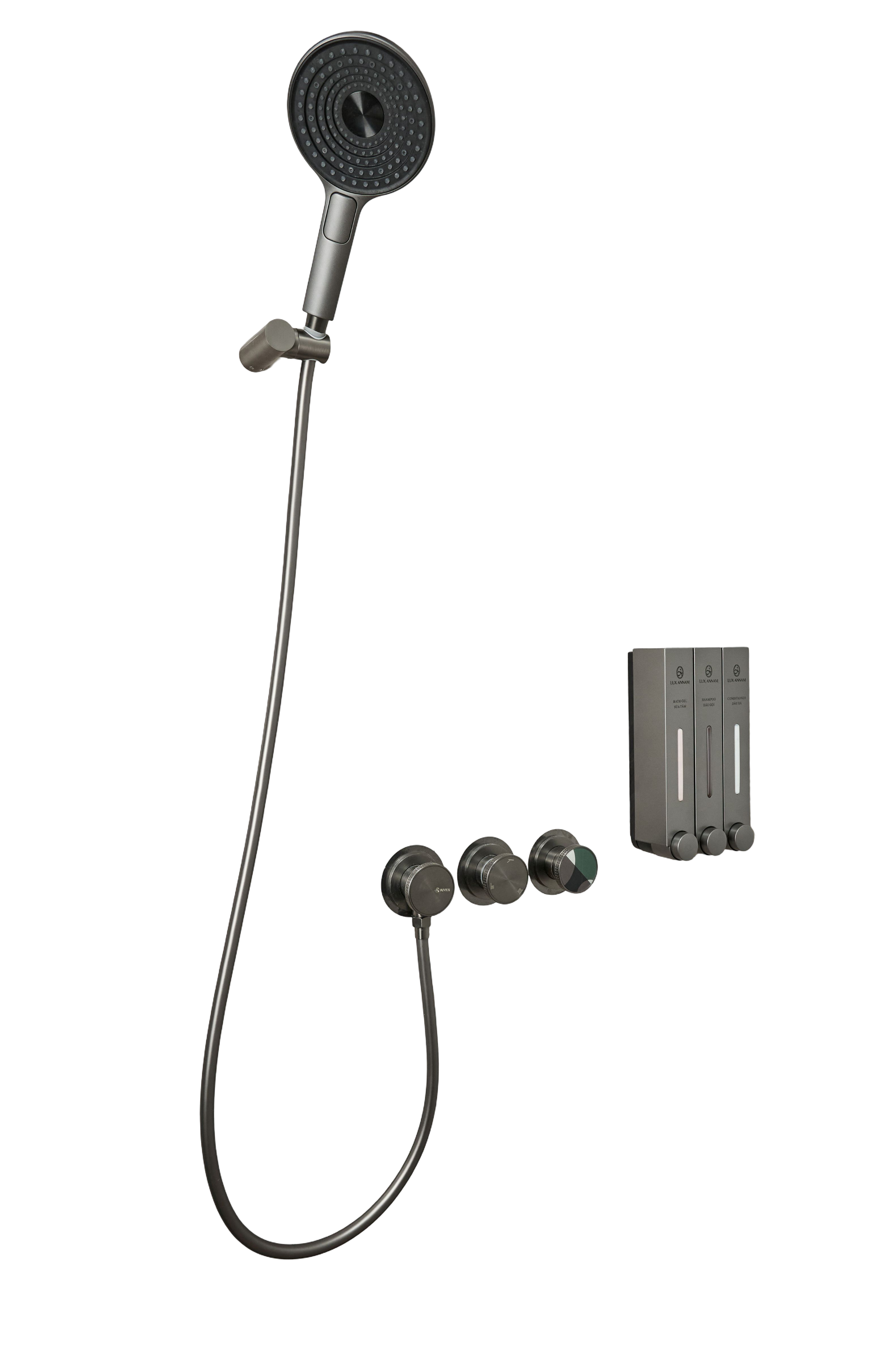 Aquadot là tuyên ngôn tối giản trong thiết kế phòng tắm. Với sắc đen nhám mạnh mẽ, ba núm điều khiển âm tường tròn gọn, 2 vòi phun hướng gắn trần và tay sen linh hoạt, sản phẩm mang đến trải nghiệm tắm cá nhân hóa và tinh tế. Từng chi tiết được tối giản về mặt hình khối nhưng tối ưu trong thao tác – lý tưởng cho không gian mang gu thẩm mỹ hiện đại, Japandi hoặc industrial sang trọng.