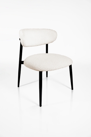 Chất Liệu Cao Cấp, An Toàn: Được làm từ vải bouclé cao cấp, khung ghế gỗ plywood tiêu chuẩn E1 và chân inox mạ Ti Black HL, sản phẩm đảm bảo độ bền lâu dài và sự an toàn cho sức khỏe.