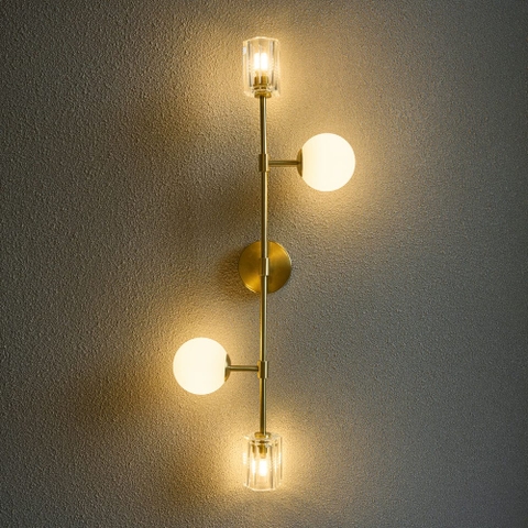 Thiết kế đối xứng: Được thiết kế với hai loại chao đèn mang lại hiệu ứng ánh sáng đối lập – một mềm mại, một sắc nét, tạo ra sự tương phản độc đáo trên tường.