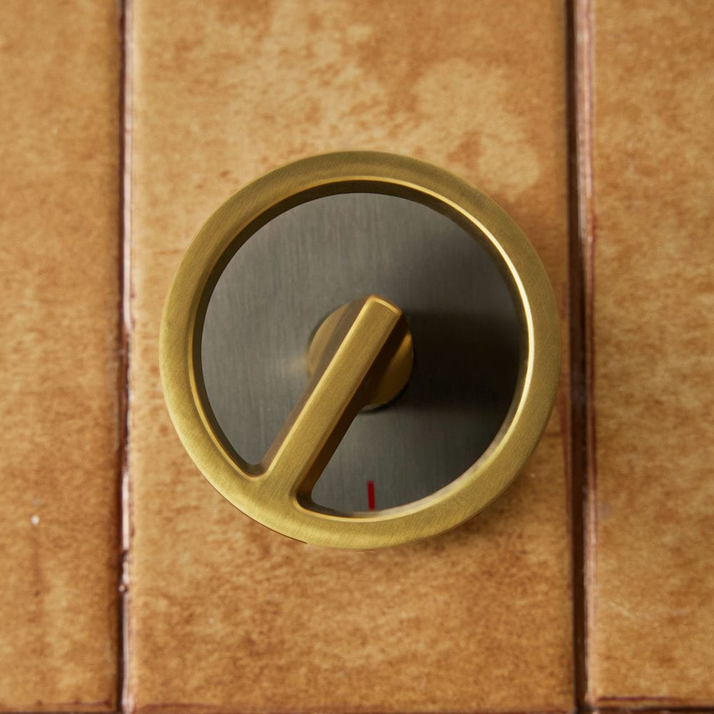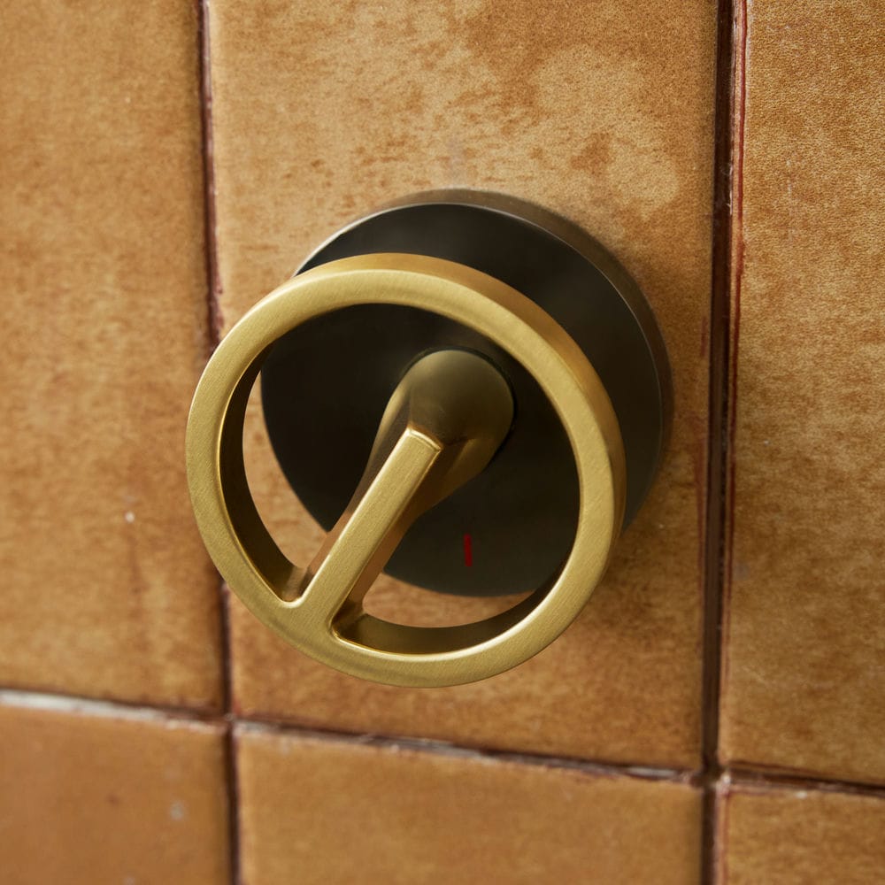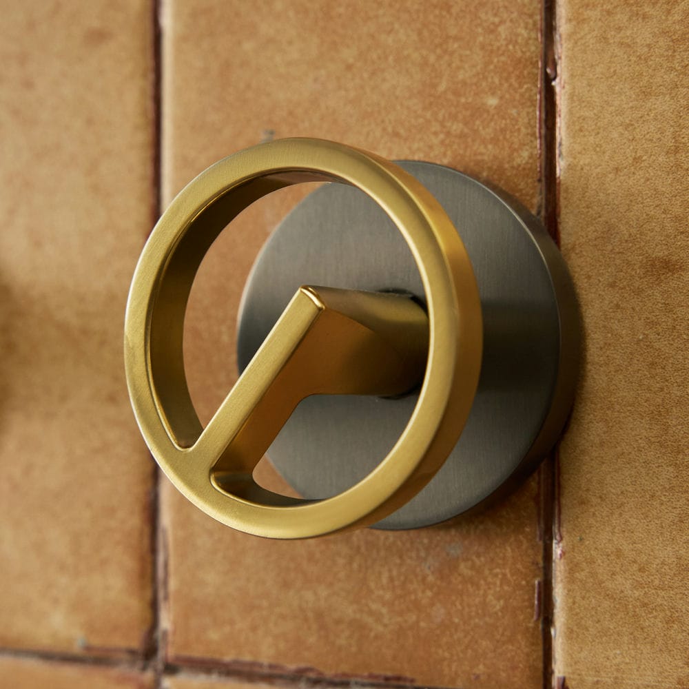 Tay vặn rỗng, vòng kim loại viền vàng ánh nhạt – điểm nhấn tương phản đẹp mắt
