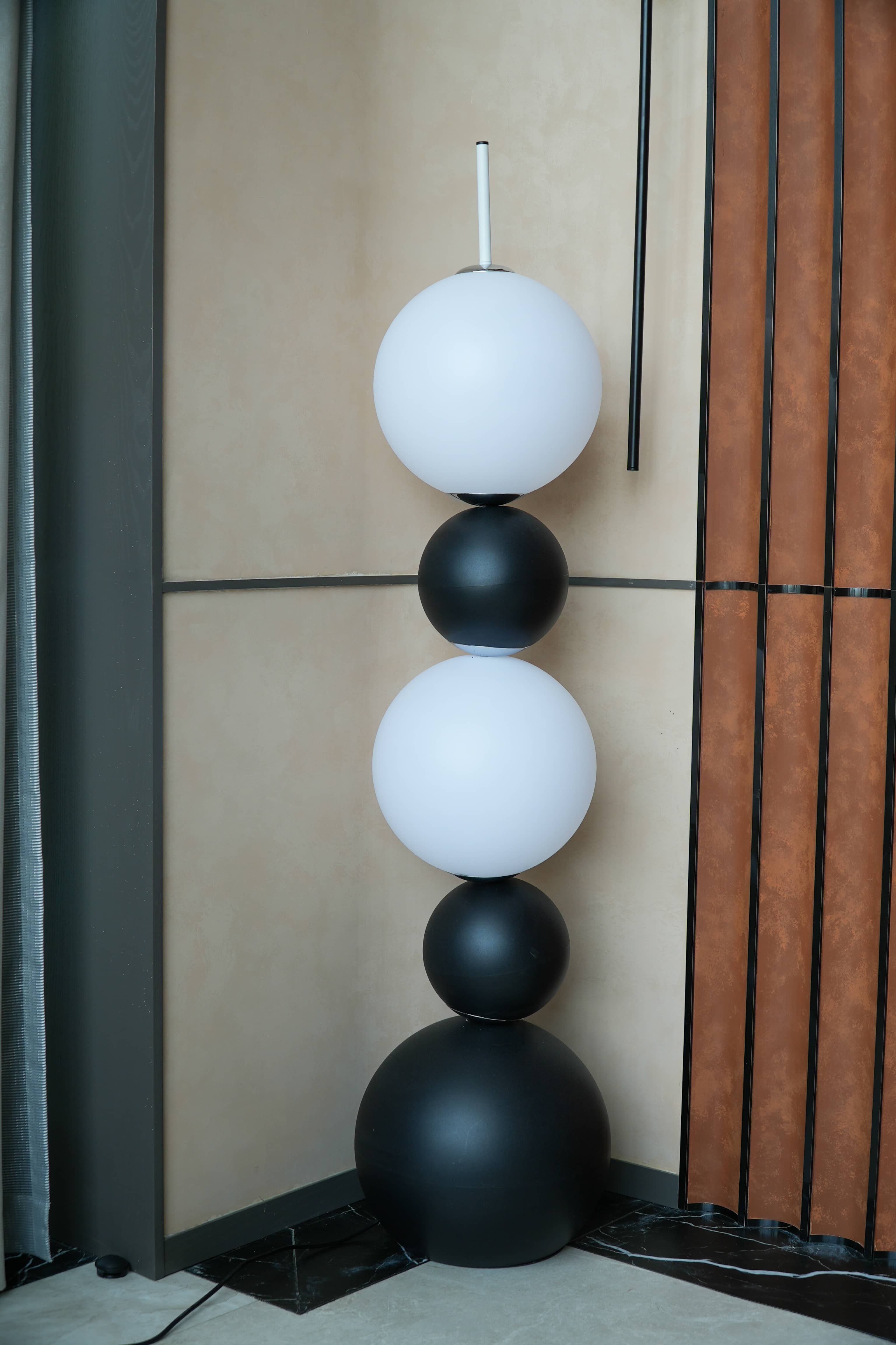 Khối cầu đen: Vật liệu sơn mờ, mang đến vẻ đẹp hiện đại và cảm giác vững chắc.