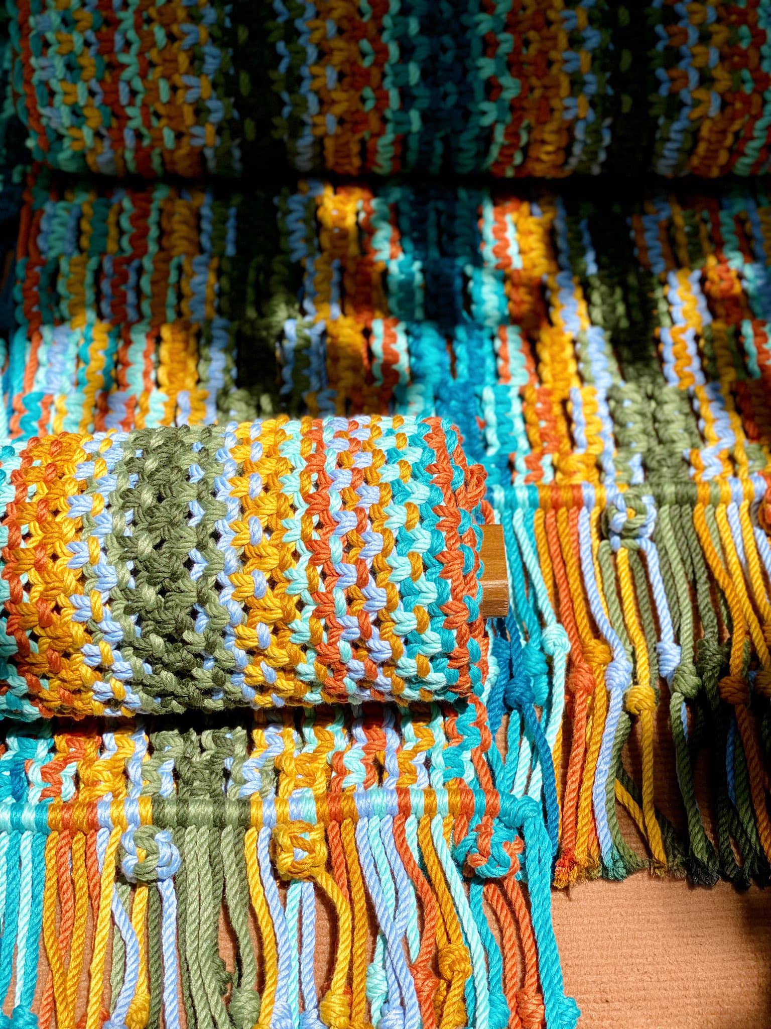 Rivius Prisma – Ghế Macrame Gỗ Gấp Đan Thủ Công Sắc Cầu Vồng