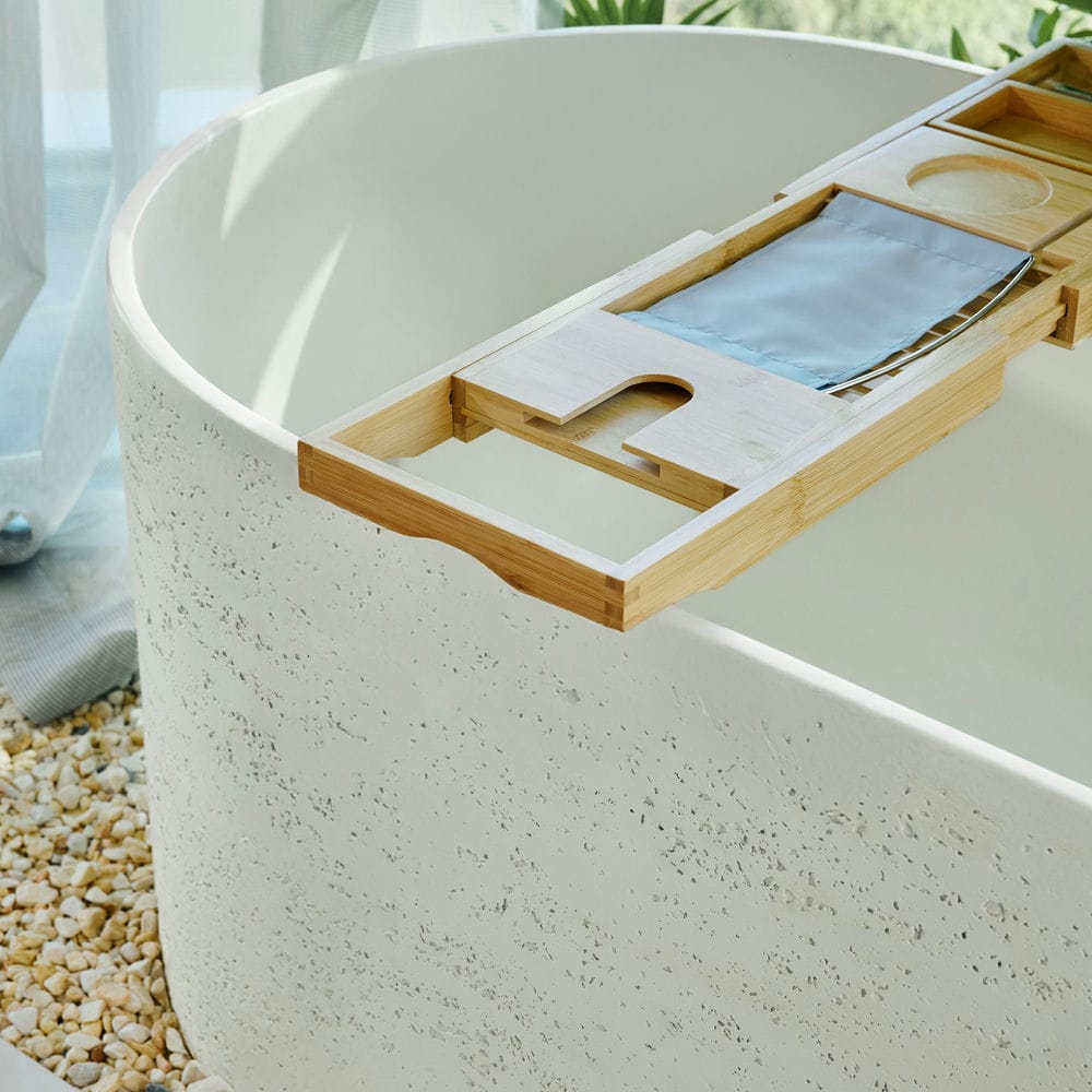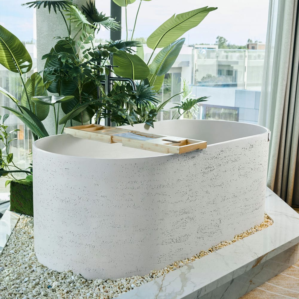 Eleva được chế tác từ Solid Surface – vật liệu đá nhân tạo cao cấp với bề mặt nhẵn mịn, độ bền cao và khả năng giữ nhiệt tuyệt vời. Lớp hoàn thiện matte trắng tinh khiết giúp tăng cường cảm giác nhẹ nhàng và thanh lịch, đồng thời dễ dàng vệ sinh, chống bám bẩn và trầy xước theo thời gian.