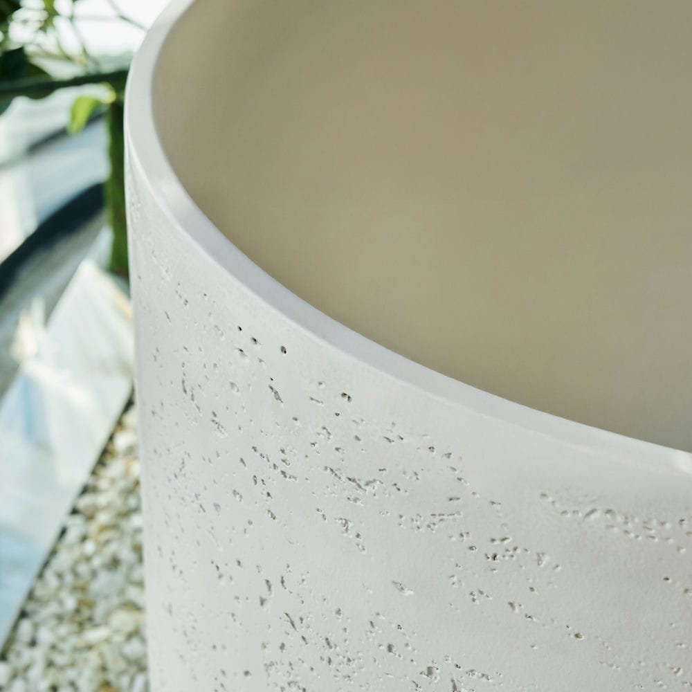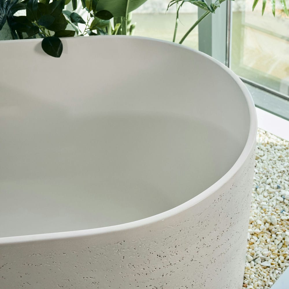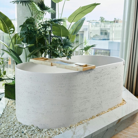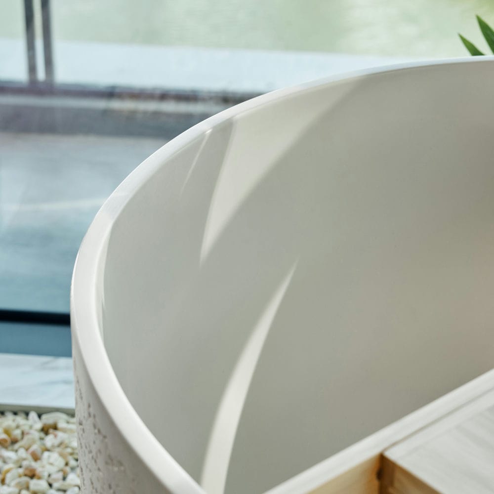 Rivius Saren được chế tác từ Solid Surface – một vật liệu đá nhân tạo cao cấp với bề mặt nhẵn mịn, bền bỉ và khả năng giữ nhiệt tuyệt vời. Lớp hoàn thiện matte trắng tinh khiết không chỉ mang lại vẻ đẹp thanh thoát mà còn giúp dễ dàng vệ sinh và chống bám bẩn, trầy xước theo thời gian.