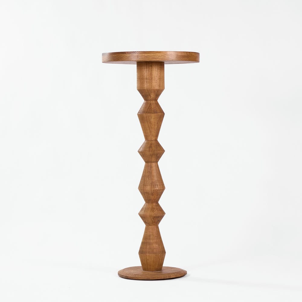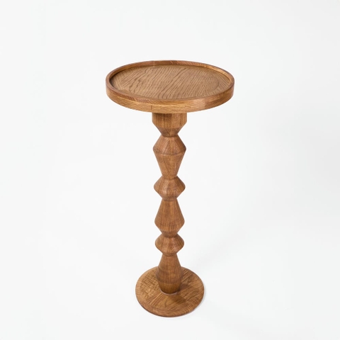 Rivius Turnelle là mẫu bàn tròn nhỏ gọn mang vẻ đẹp điêu khắc độc đáo, nổi bật với phần chân bàn được tạo hình từ chuỗi khối gỗ nối tiếp – uốn lượn như một cột điêu khắc hình học sống động. Mặt bàn tròn thanh thoát, hoàn hảo để đặt loa, khung ảnh hay vật phẩm trang trí, tạo điểm nhấn tinh tế cho sảnh đón, showroom hay góc chill nghệ thuật.
