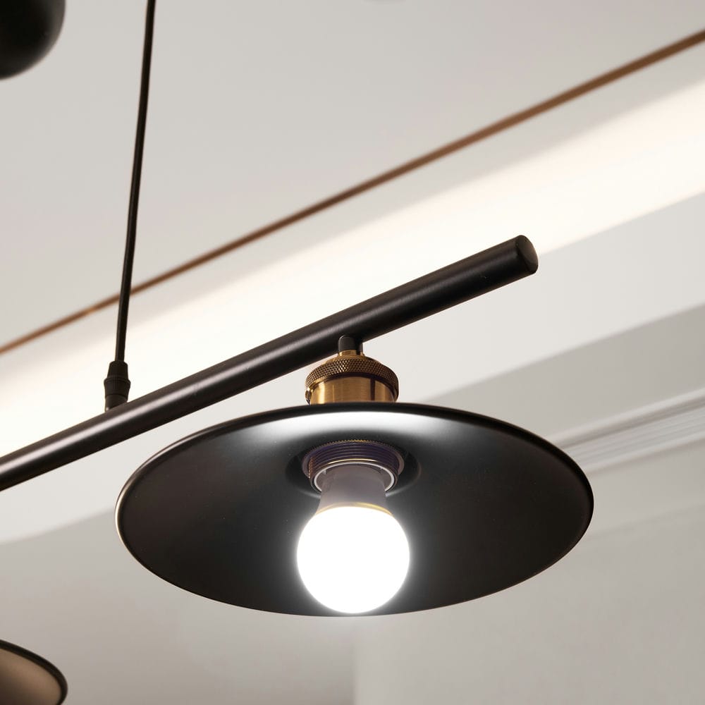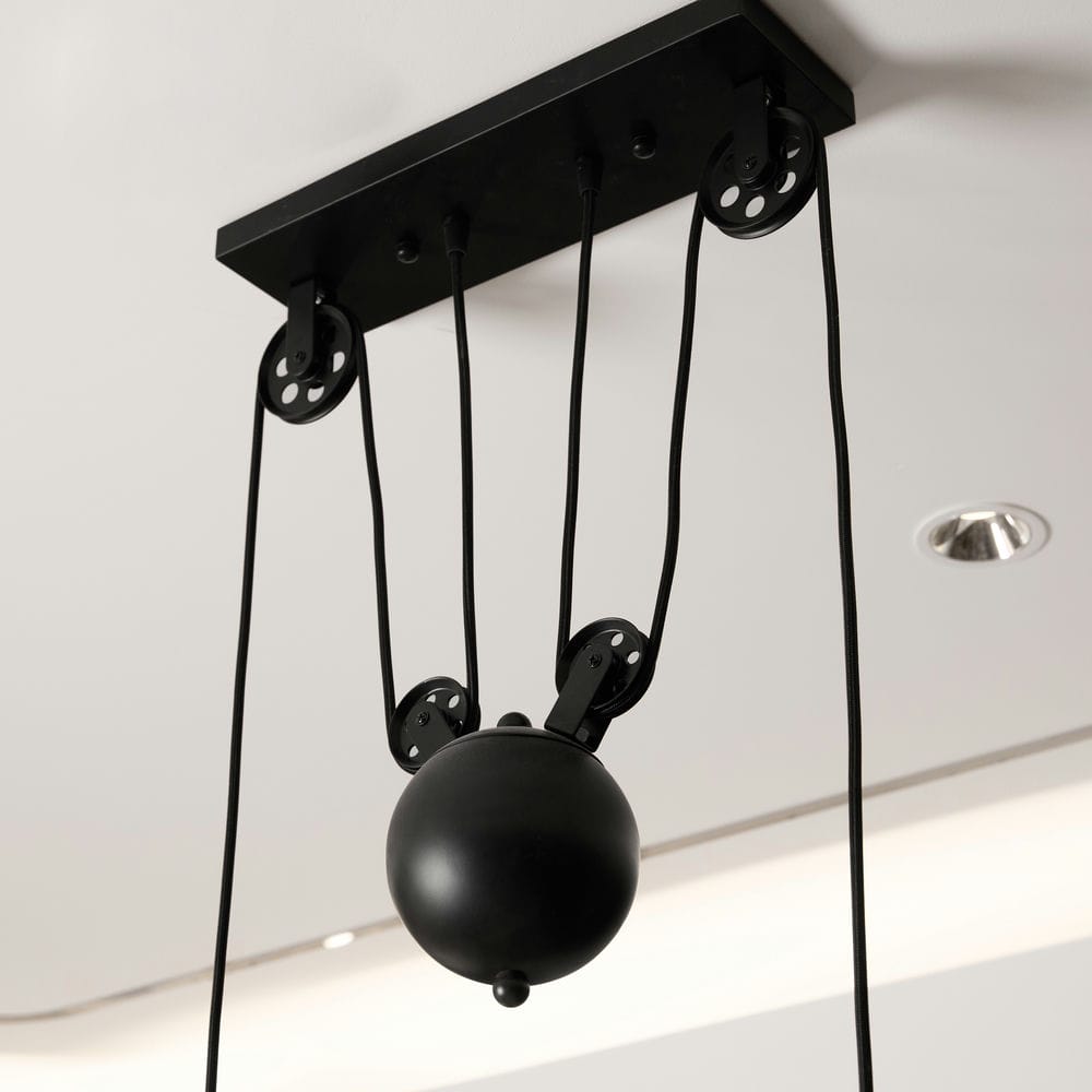 Thiết kế treo ròng rọc linh hoạt, cho phép điều chỉnh độ cao từng bóng đèn theo nhu cầu.