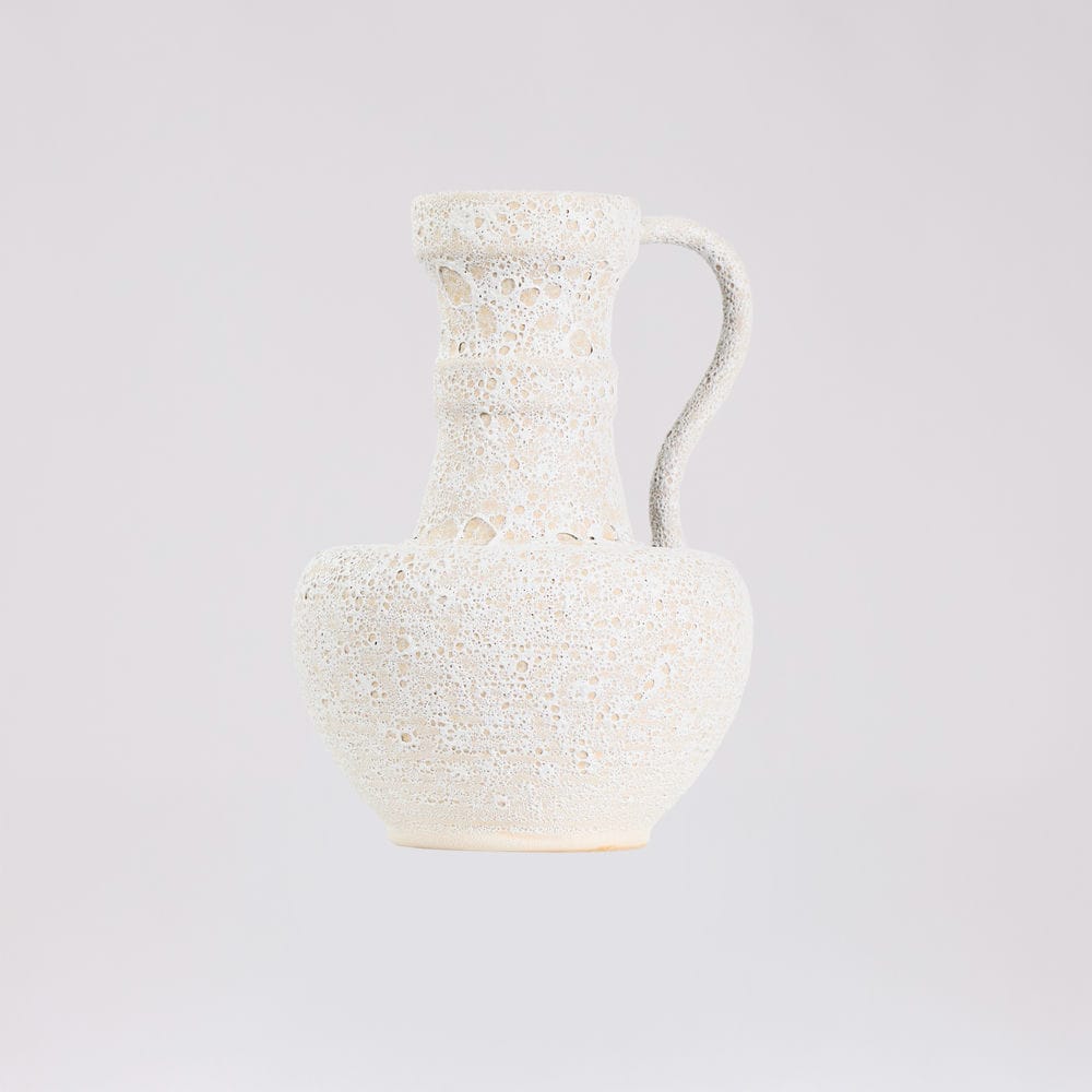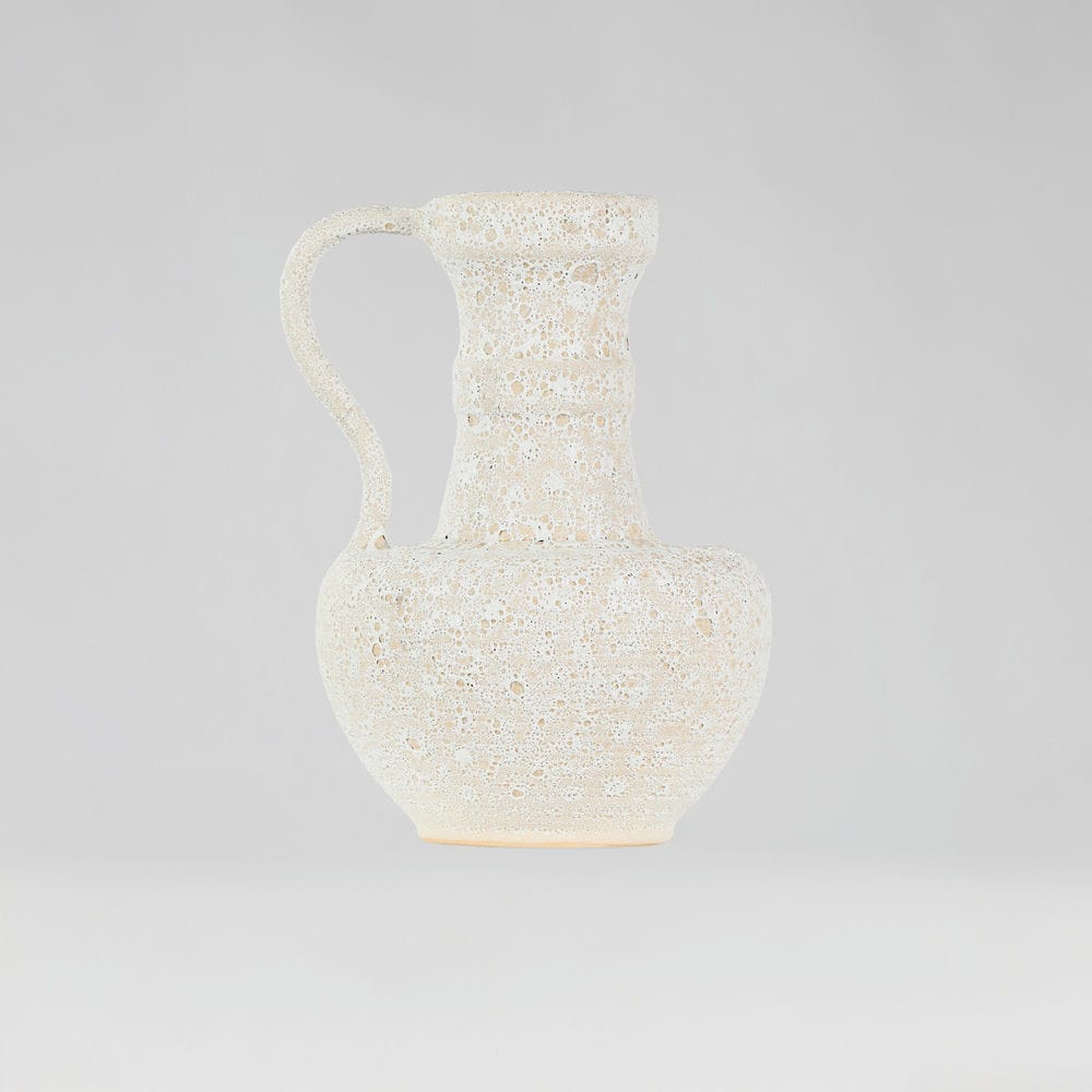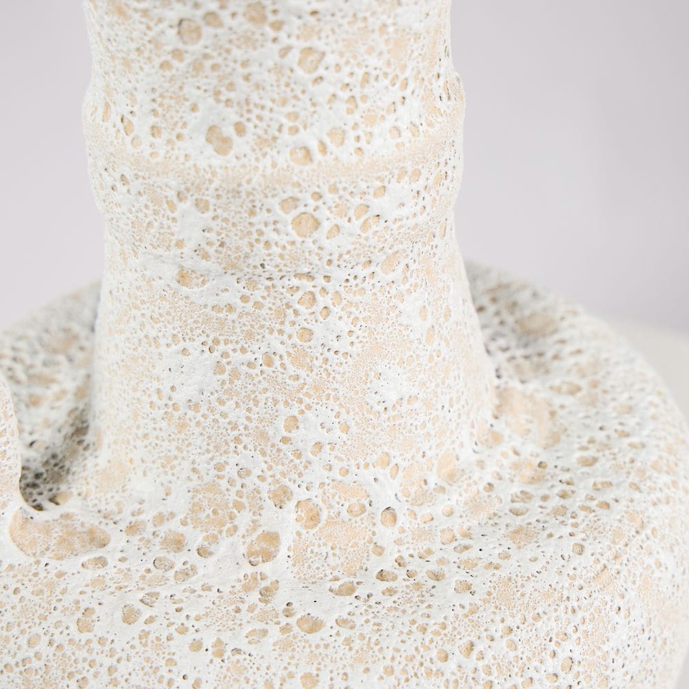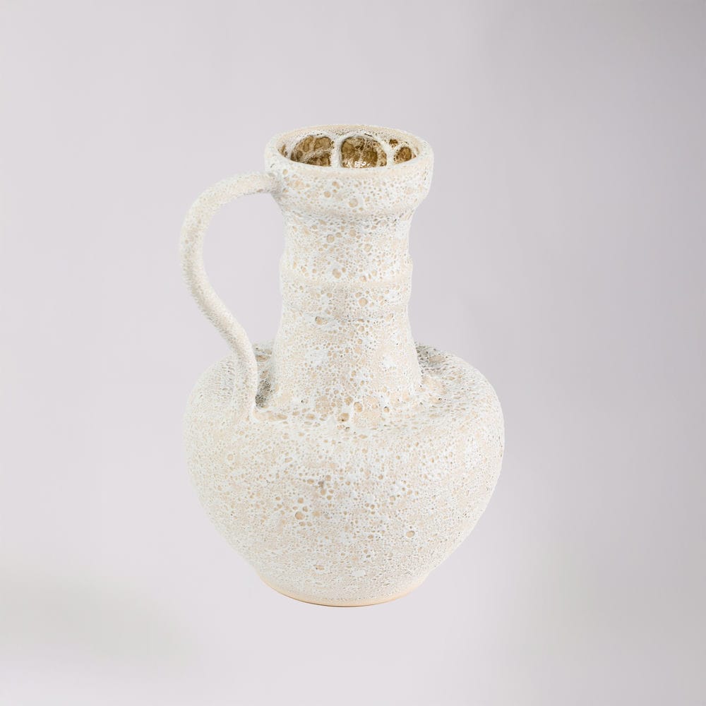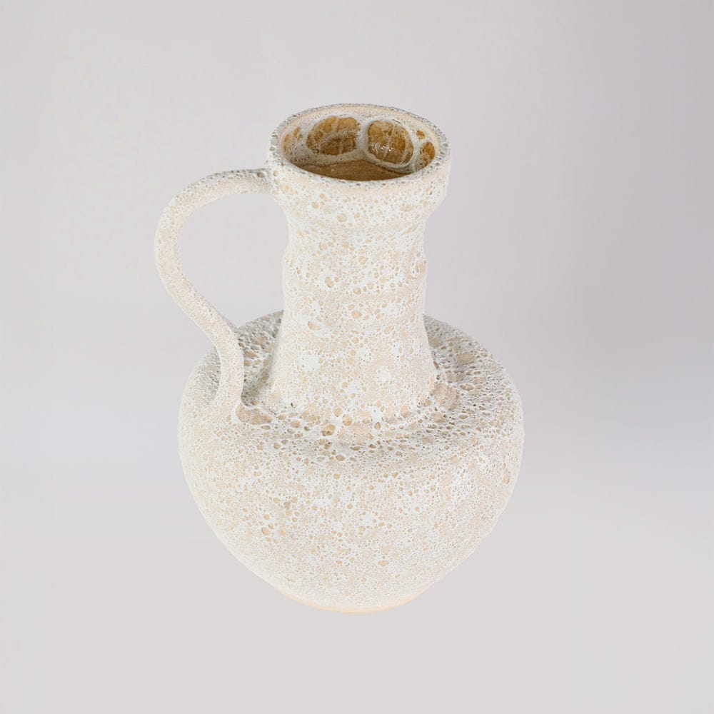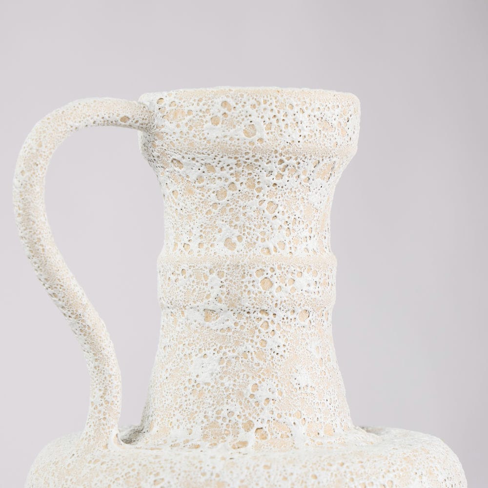 Rivius Vulkara là chiếc bình mang vẻ đẹp thô mộc như được khai thác từ lòng núi đá. Bề mặt sần tổ ong như vỏ nham thạch nguội, kết hợp cùng hình khối cổ điển kiểu bình cổ Hy Lạp và tay cầm uốn cong mạnh mẽ – tạo nên một vật phẩm trang trí đầy khí chất. Đây không chỉ là bình, mà còn là một biểu tượng của sự nguyên bản và bền vững.